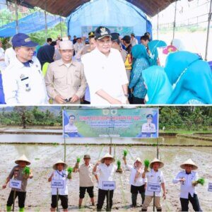 BARRU,SUARABANGSAINDONESIA—Bupati Barru Dr. (H.C) Ir. H. Suardi Saleh, M.Si bersama Staf Ahli Menteri Pertanian Prof.Dr.Ir. Yusran, M.Si Tanam Padi Perdana di Dusun Pallae Desa Lampoko