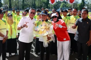 BARRU,—Riuh tepuk tangan dan sorak sorai penonton menggema di Alun-alun Colliq Pujie saat Tim Senam RSUD Lapatarai Barru, dipimpin langsung oleh Direktur RSUD dr. Suriadi