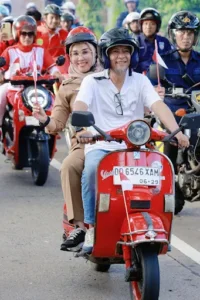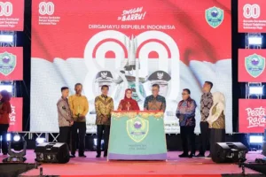 BARRU,—Ada pemandangan berbeda usai penurunan bendera pada peringatan HUT Proklamasi Kemerdekaan Republik Indonesia ke-80 di lapangan Sumpang Binangae Barru, Minggu (17/8/2025). Semula, para peserta upacara