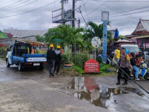 BARRU,- Bhabinkamtibmas Kelurahan Mangempang Aipda A. Marwan, S.H., M.H bergerak cepat merespons laporan masyarakat terkait ledakan pada sebuah travo listrik yang mengakibatkan kabel listrik terputus