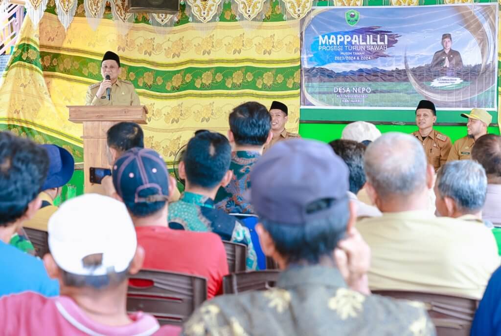 BARRU,SUARABANGSAINDONESIA—Bupati Barru Ir. H. Suardi Saleh, M.Si., menghadiri acara ritual Mappalili (Turun Sawah) musim tanam 2023/2024, di desa Nepo, kecamatan Mallusetasi, pada Selasa (15/11/2023).