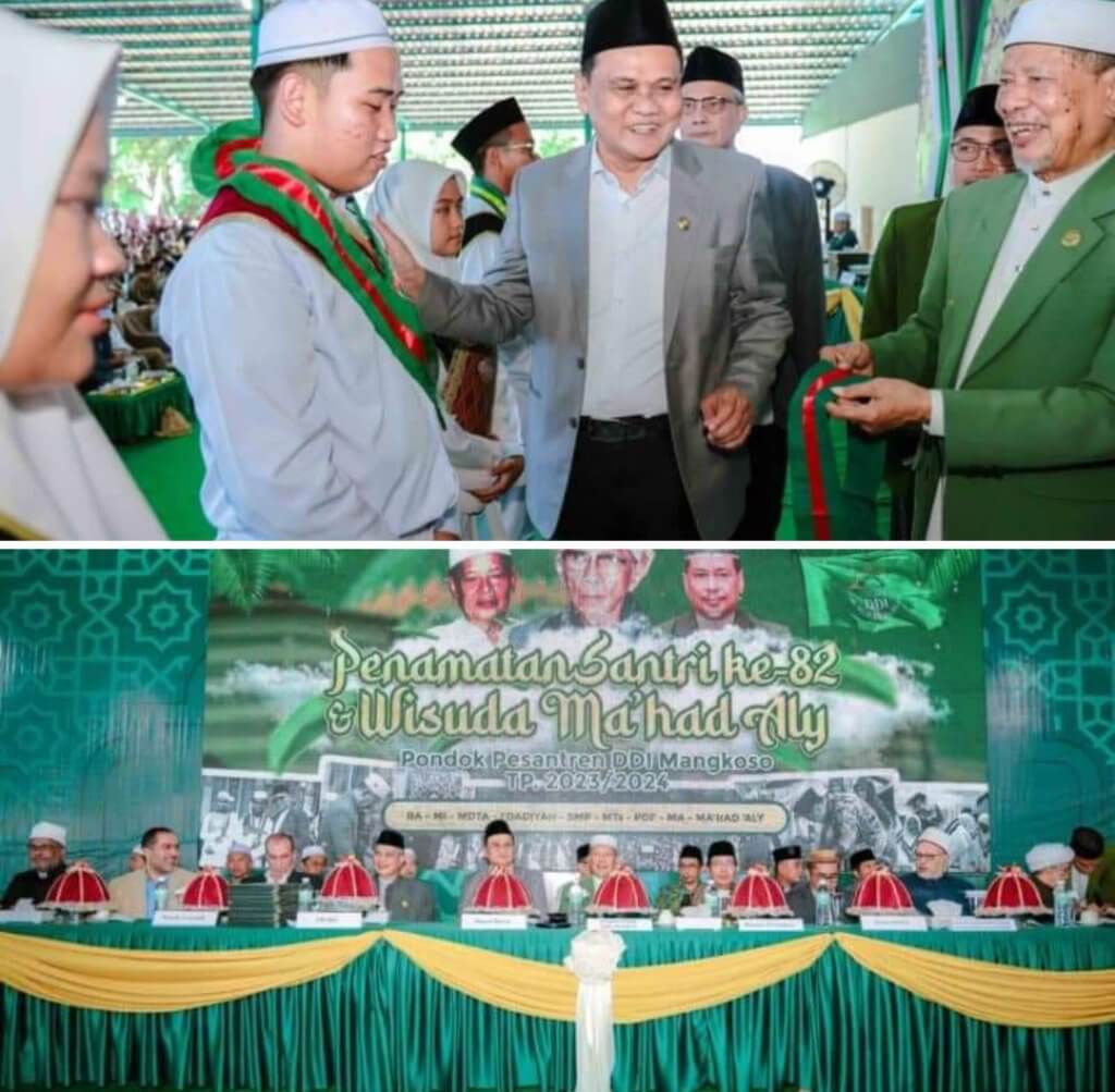 BARRU,SUARABANGSAINDONESIA—Bupati Barru Ir.H.Suardi Saleh,M.Si hadiri Penamatan Santri ke-82 dan Wisudah Ma’had Aly Pondok Pesantren Darud Da’wah Wal Irsyad (DDI) Mangkoso Tahun Pelajaran 2023/2024