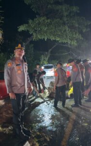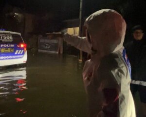 BARRU,— Di tengah guyuran hujan deras, Bupati Barru Andi Ina Kartika Sari, S.H., M.Si., turun langsung meninjau lokasi banjir yang sempat membuat panik warga dan