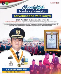 PADANG, Suarabangsaindonesia— Presiden RI Joko Widodo diwakili Menteri Pertanian Prof Dr Syahrul Yasin Limpo, SH. M. Si. MH menyematkan tanda kehormatan Satya Lancana Wira Karya kepada