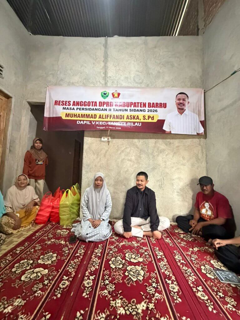 BARRU,SUARABANGSAINDONESIA– Wakil Ketua DPRD Kabupaten Barru dari Fraksi Gerindra, Muhammad Aliffandi Aska, S.Pd., kembali melaksanakan agenda Reses Masa Sidang II Tahun 2026. Kali ini, legislator muda tersebut menemui konstituennya di Juppaie, Kelurahan Tanete, Kecamatan Tanete Rilau, pada Rabu (11/3).
