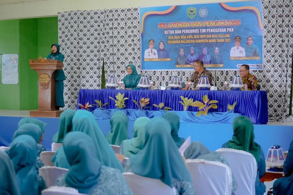 BARRU,SUARABANGSAINDONESIA—Ketua TP.PKK Kabupaten Barru drg.Hj Hasnah Syam kali ini menghadiri pelantikan ketua TP.PKK Desa se kecamatan Mallusetasi yang berlangsung di PKG Mallawa, kecamatan Mallusetasi,Sabtu (06/04/2023).