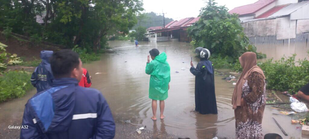 Dari pantauan langsung ke lokasi banjir beberapa rumah warga terdampak banjir yang tak kunjung surut dan hujan tak redah-redah, karena saat ini banjir sudah setinggi paha orang dewasa.