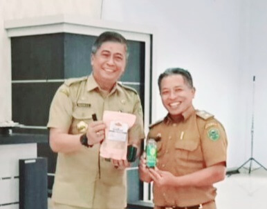 Produk Unggulan Desa tersebut yakni, Madu Trigona dan Gula semut diserahkan kepada Sekda Barru DR. Abustan AB.