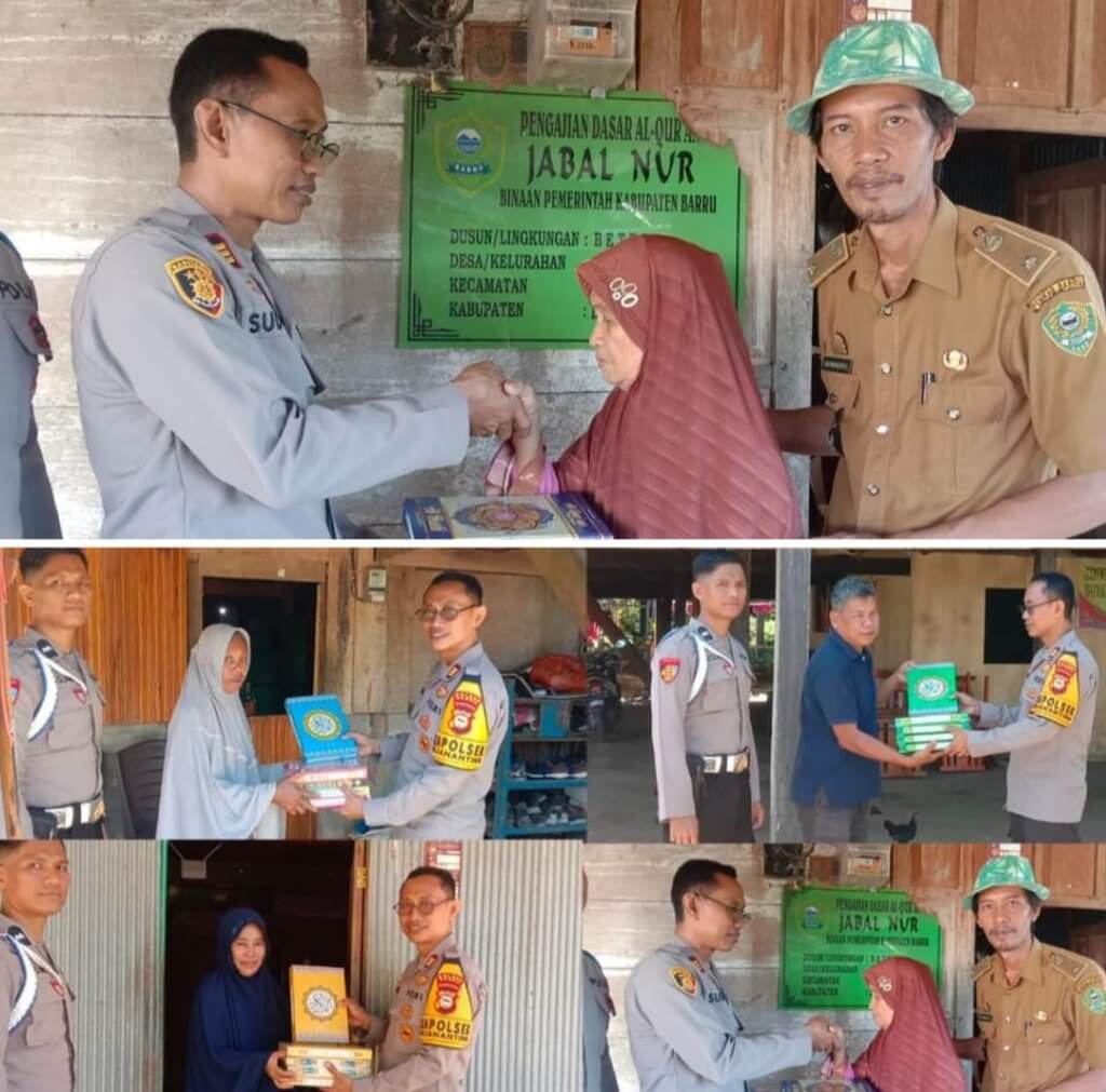 Kapolsek Pujananting AKP Sudarto, S.Sos. MH., secara pribadi memberikan bantuan berupa Al Qur’an kepada guru mengaji di empat tempat rumah Pengajian yaitu sebagai berikut: