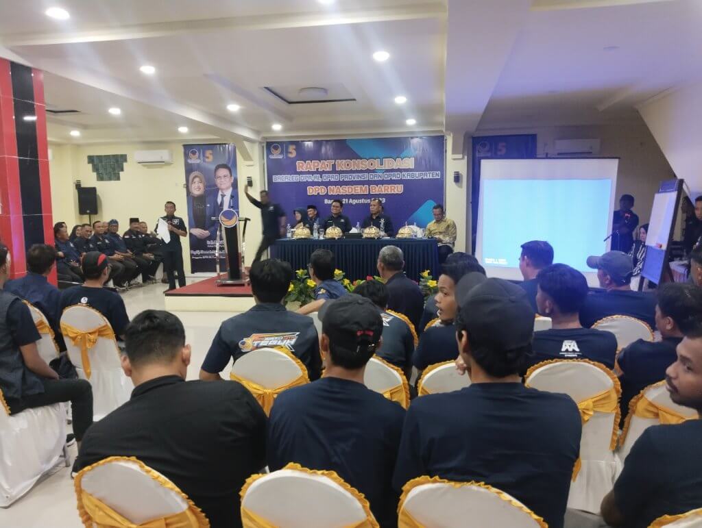 BARRU,SUARABANGSAINDONESIA—DPD Nasdem Barru rapat menggelar konsolidasi internal yang diikuti puluhan kader Nasdem se-Kabupaten Barru, di Hotel Youtefa, Senin (21/08/2023) Siang.