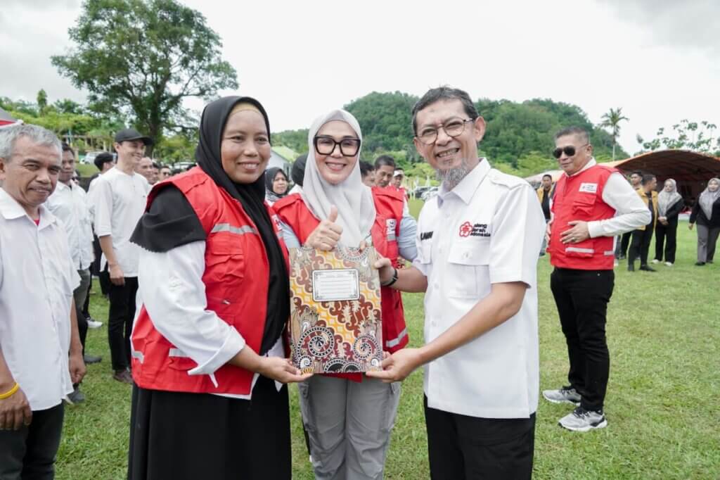 BARRU,- Bupati Barru, Andi Ina Kartika Sari, SH., M.Si., bersama Wakil Bupati Barru, Dr. Ir. Abustan A. Bintang, M.Si., hadiri Pelantikan Pengurus Palang Merah Indonesia (PMI) Tingkat kecamatan se-Kabupaten Barru Masa Bakti 2025 – 2028, Minggu (30/11/2025).