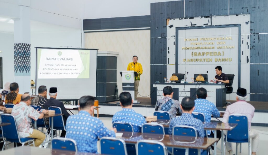 BARRU,SUARABANGSAINDONESIA— Wakil Bupati Barru, Dr. Ir. Abustan A. Bintang,M. Si membuka secara resmi Rapat Evaluasi Pelaksanaan Pengentasan Kemiskinan dan Penghapusan Kemiskinan Ekstrem yang digelar di Aula Bappelitbangda Barru, Kamis (24/7/2025).