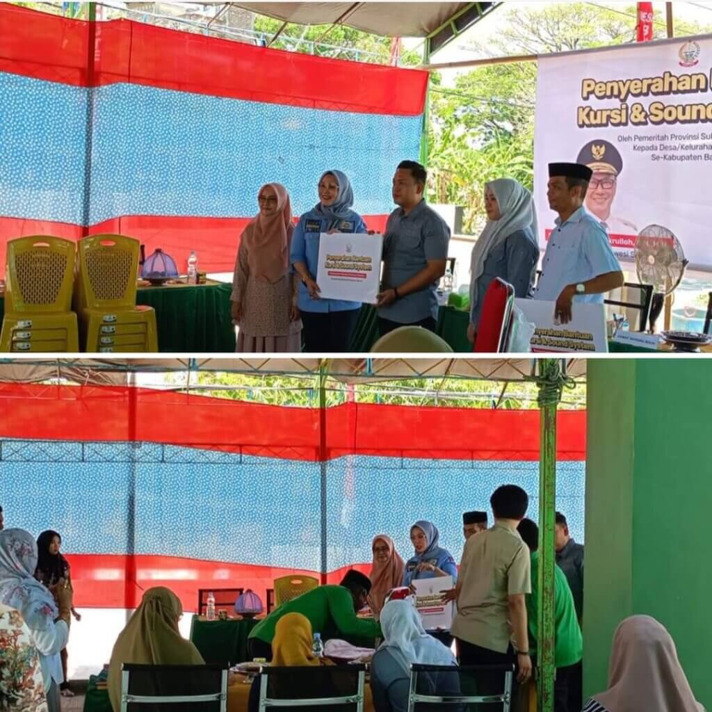 BARRU,SUARABANGSAINDONESIA—Ketua DPRD Provinsi Sulawesi Selatan Andi Ina Kartika Sari,SH,M.Si menyerahkan bantuan kursi dan sound sistem kepada 55 Desa dan Kelurahan se-Kabupaten Barru Minggu (16/9/2024).